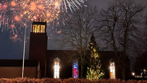 Vi inviterer til en festlig gudstjeneste kl. 15 med efterfølgende reception i menighedssalen med bobler, kransekage og fyrværkeri.